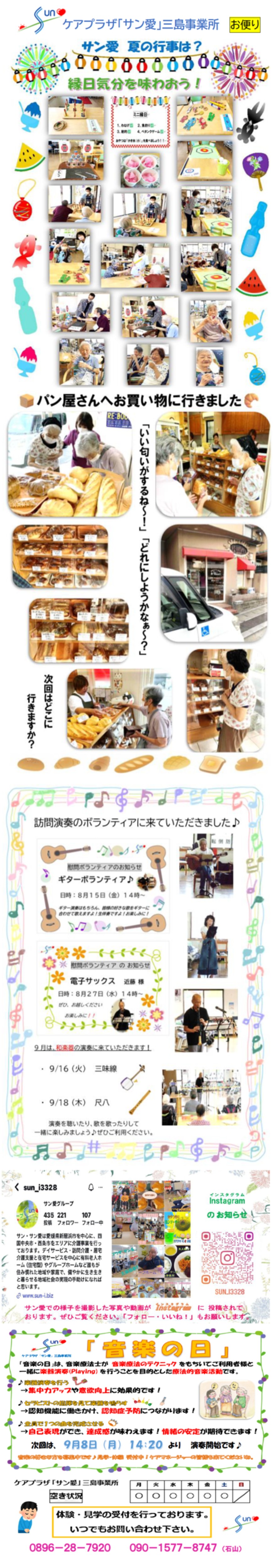 ホーム > 施設の案内> ケアプラザ「サン愛」三島事業所 四国中央市中之庄町621-1 電話 0896-28-7920 |